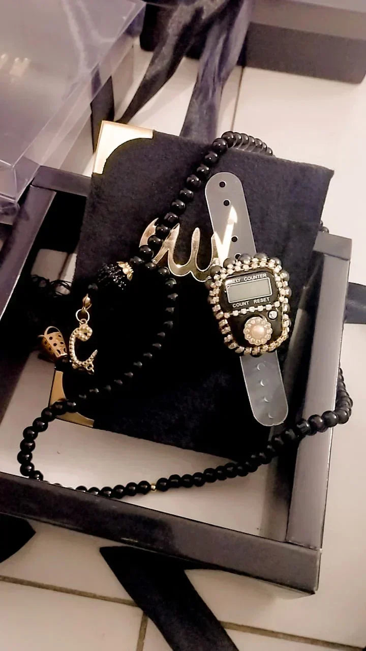 Holy Qur'an Set with Pearl Prayer Beads and Digital Tasbih with Ribboned Box